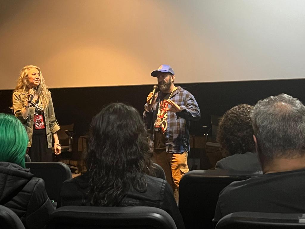 Fabián Forte, um dos diretores de Retratos do Apocalipse, durante a sessão comentada na Cinemateca Paulo Amorim, no domingo (20/04). Foto: Alisson Santos/CineNewsPoa.